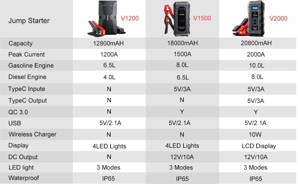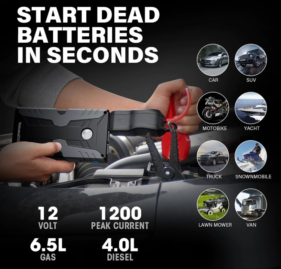 TOPDON Volcano1200 er designet til biler, lastbiler, både, motorcykler, græsslåmaskiner og er en let at bære springstarter, der indeholder mere kraft til dine forskellige krav i nødstilfælde under start, natbelysning, udendørs aktiviteter, selvkørende og naturkatastrofer. Volcano1200 er designet med flere beskyttelser, hvilket er ekstremt sikkert for enhver bruger, og startprocessen skader ikke dit bilbatteri.